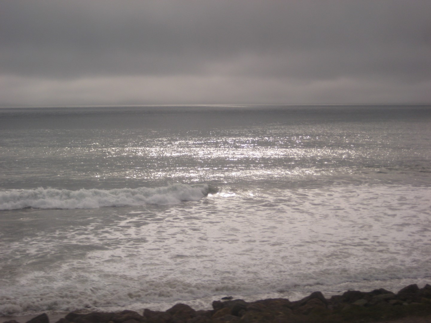 drizzle, fog and dirty train windows hid the foam-splashed beaches on the way